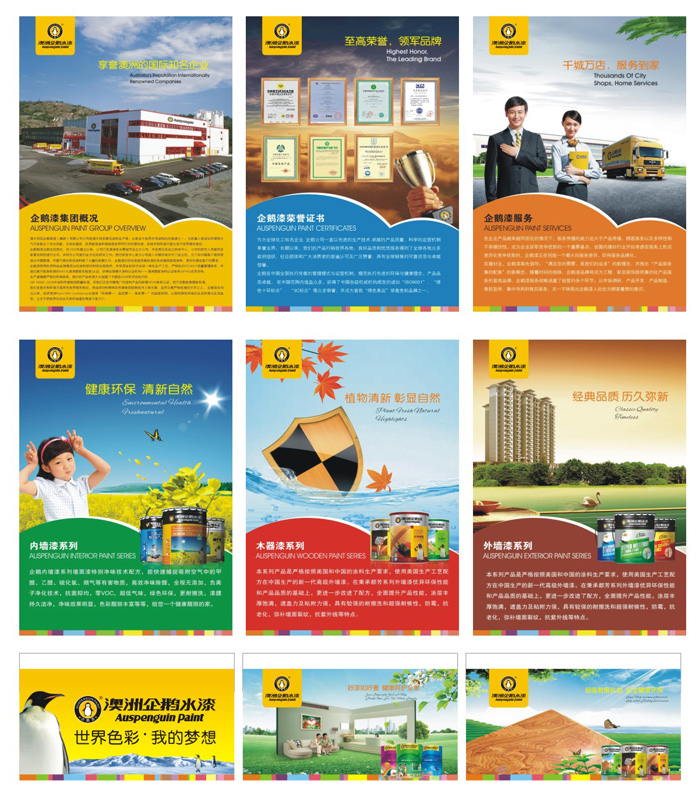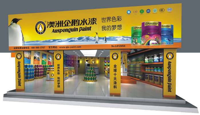 澳洲企鹅漆形象专卖店是直接面向消费者的展示场所,必需突出表现品牌形象的视觉识别要素,以强烈持久的影响力提高消费者对澳洲企鹅品牌的认知度,强化澳洲企鹅品牌的强势化工信息,营造出高品质的现场氛围,传达澳洲企鹅漆高品质与诚信的品牌形象。形象专卖店在当地市场营造出强势轰动的品牌效果,以展示丰富的产品为主,整体形象高雅、精致,造就澳洲企鹅品牌在当地的高度品牌影响力。消费者在选购产品时可以十分方便地从展示物品的宣传中得到足够的产品信息。 AUSPENGUIN paint store image is a direct-to-consumer exhibition place, it is necessary to highlight the performance of brand visual identity elements, with a strong and lasting influence to raise consumer awareness of the AUSPENGUIN brand, strengthen brand AUSPENGUIN strong chemical information, and create high quality live atmosphere, high-quality paint AUSPENGUIN convey brand image and integrity. Image stores in the local market to create a strong brand sensational effect, to showcase the rich products, the overall image of elegance, sophistication, creating a high degree of brand influence AUSPENGUIN brand in the local. Consumers can very easily get enough product information from promotional display items at the time of purchase of the product.